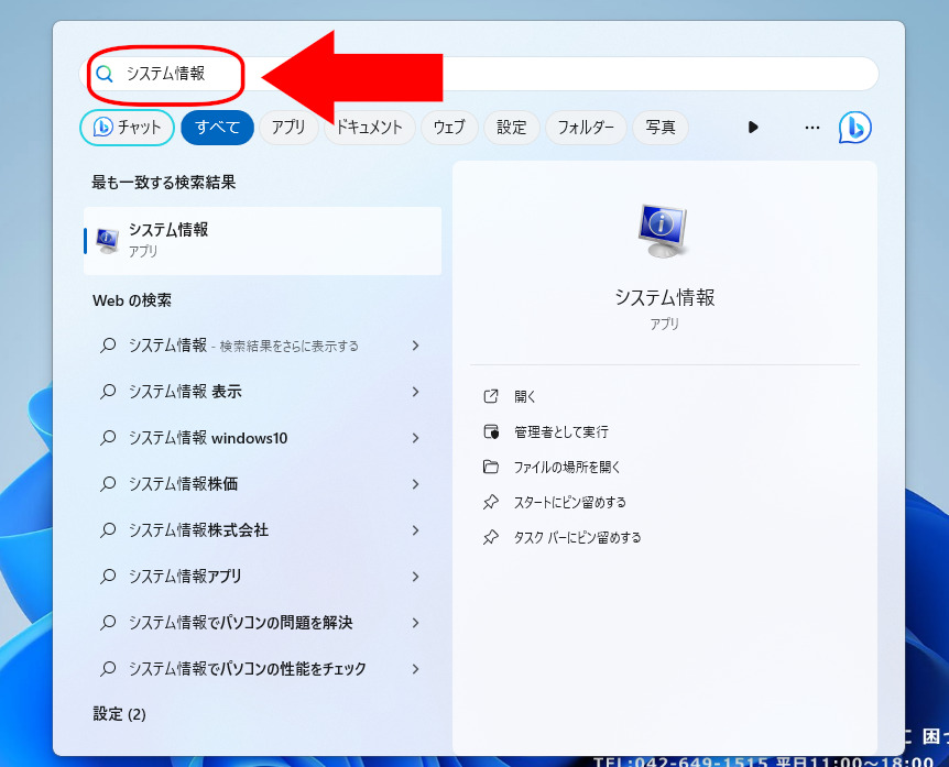 - 在搜索框中輸入“系統信息”,然後單擊出現的“系統信息”。