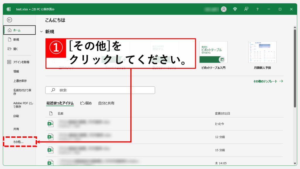 單擊“文件”選項卡轉至 Excel 主屏幕。