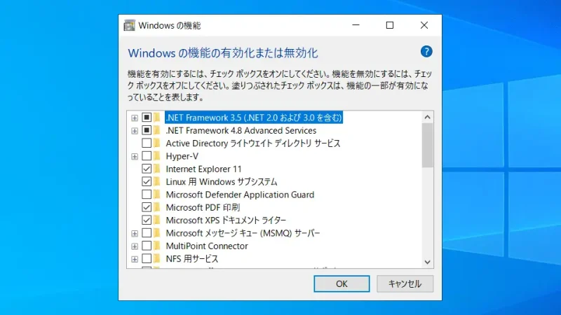 - 勾選啟用或禁用Windows功能下的[Windows Subsystem for Linux]和[虛擬機平台],然後單擊[確定]。