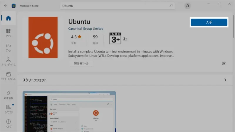 - 從 Microsoft Store 搜索 [Ubuntu] 並安裝 [任何版本]。