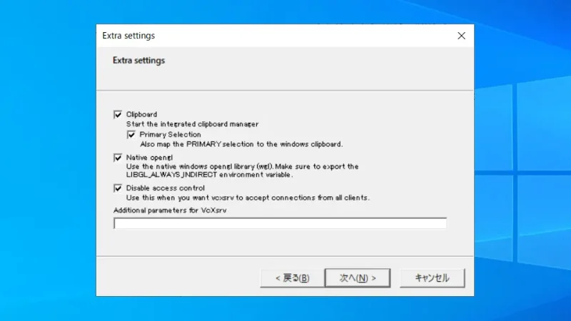 啟動 XLaunch 時更改顯示設置和禁用訪問控制設置。除此之外,如果沒有特殊原因,默認即可。