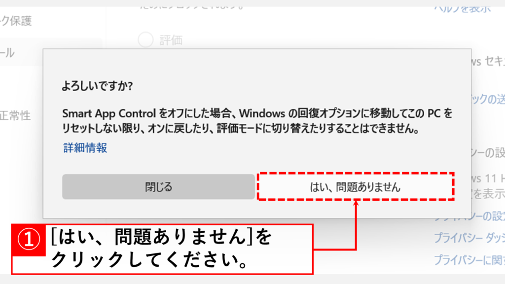 關閉(禁用)智能應用程序控制的步驟 步驟 7 在確認消息中單擊[是,沒問題]。
