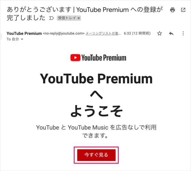 當我檢查電子郵件時,我收到一封電子郵件,內容為“YouTube Premium 註冊已完成”。點擊“立即觀看”。