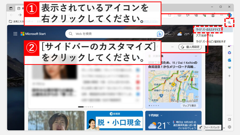 隱藏 Microsoft Edge 側邊欄的特定圖標 步驟1 右鍵單擊側邊欄中顯示的圖標,然後單擊【自定義側邊欄】