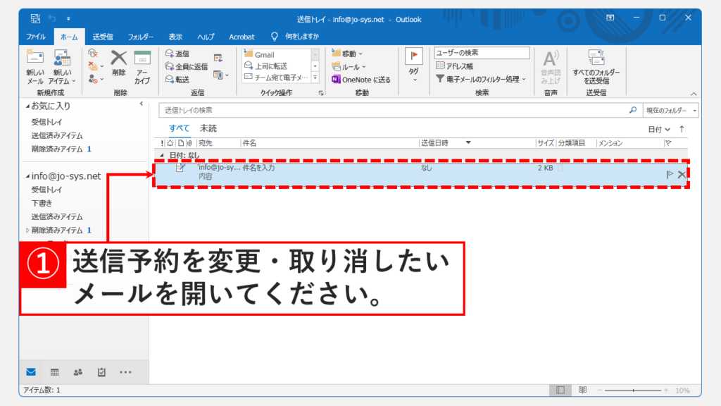 步打開“發件箱”中您想要更改或取消傳輸預訂的電子郵件。