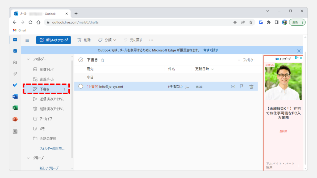 如果發送日期和時間設置正確,電子郵件將暫時保存在 Outlook.com 上名為“草稿”的文件夾中。