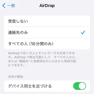 - 從AirDrop的[開始共享]中,打開/關閉[使設備更靠近]。