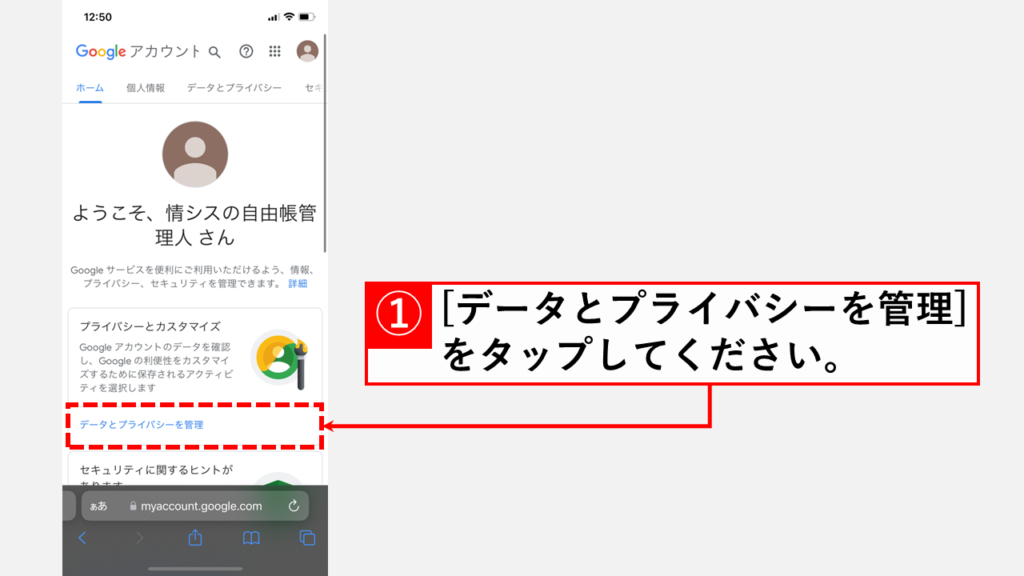 點擊管理數據和隱私即可進入 Google 帳戶數據和隱私頁面。