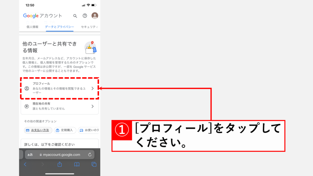 向下滾動該頁面並在“您可以與他人分享的信息”下點擊[個人資料]請。