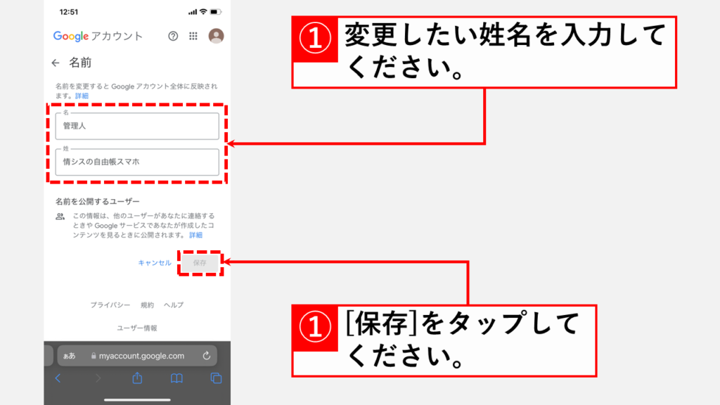 步輸入您要更改的名字和姓氏,然後點擊[保存]
