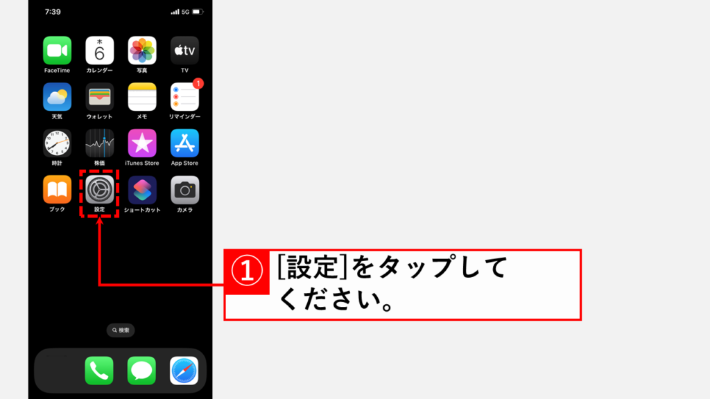 首先,單擊 iPhone 屏幕上的齒輪圖標。點擊[設置]請。