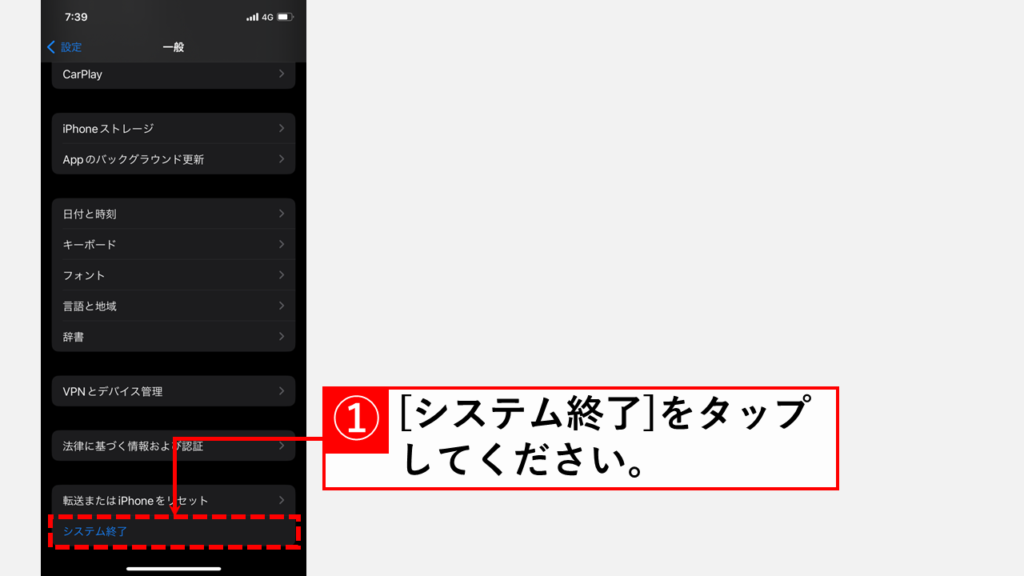 當您點擊[系統關閉]時,iPhone屏幕頂部會出現一個標有“滑動關閉電源”的按鈕。