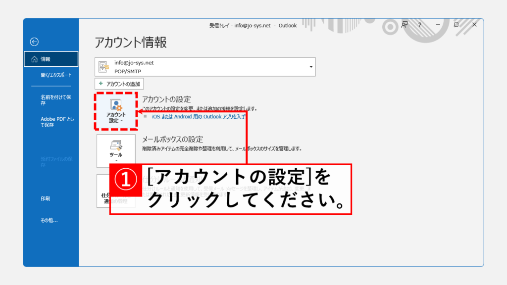 Outlook啟動時如何使用密碼保護數據文件(.pst文件)第2步單擊[帳戶設置]按鈕