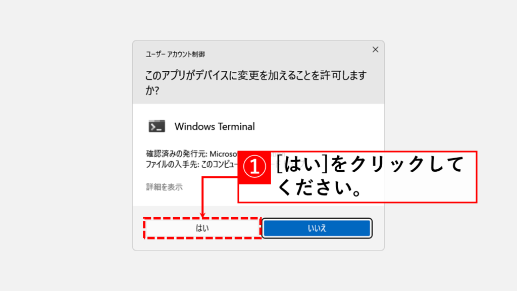 當您單擊[Windows 終端(管理員)]時,將出現一個標有“用戶帳戶控制”的窗口。