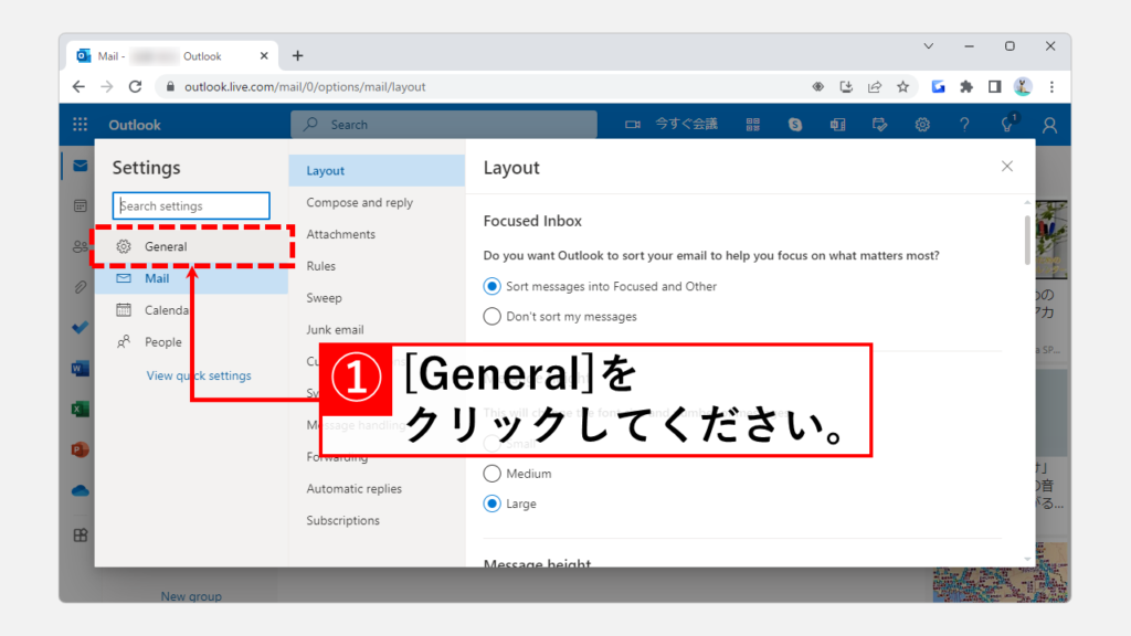 在該頁面左側的菜單中。單擊[常規](日語為[常規])請。