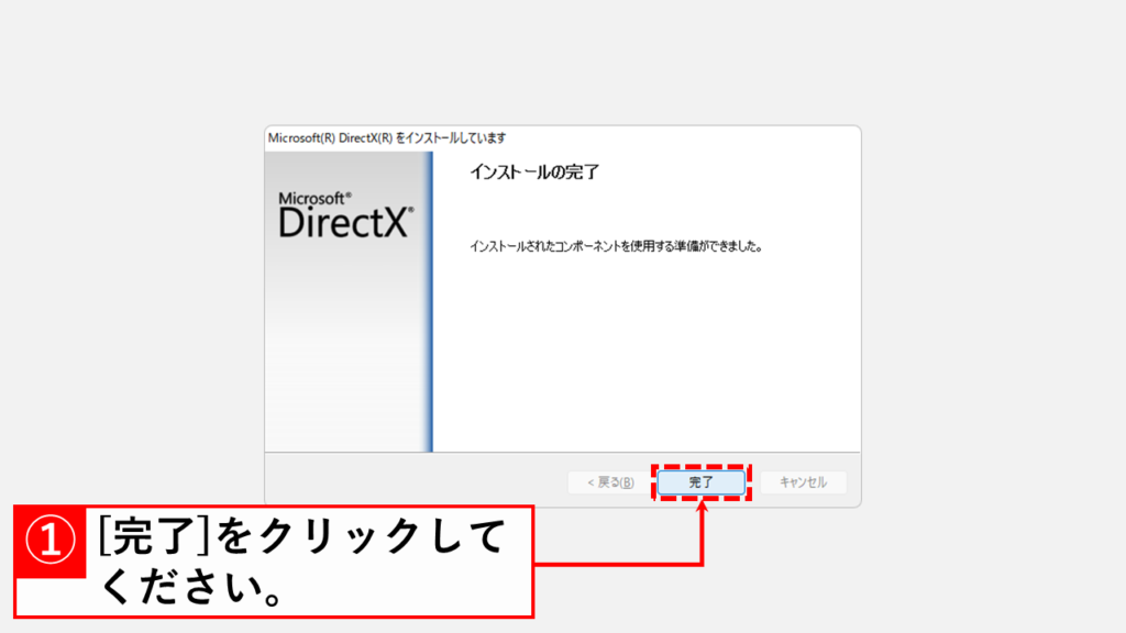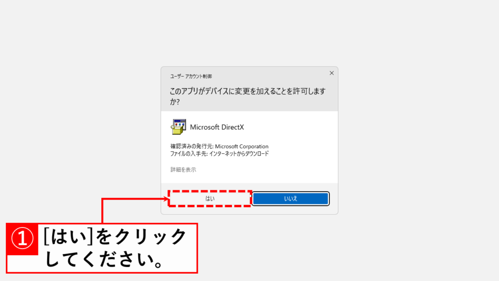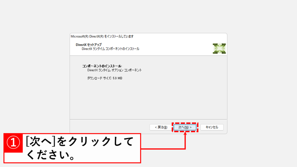 當您在“用戶帳戶控制”窗口中單擊[是]時,將出現一個帶有大文本“正在啟動 DirectX 安裝程序”的窗口。