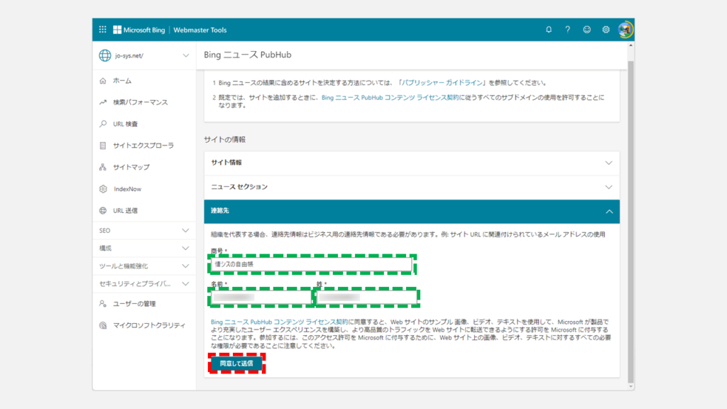 單擊“同意並提交”返回標有“Bing News PubHub”的頁面。
