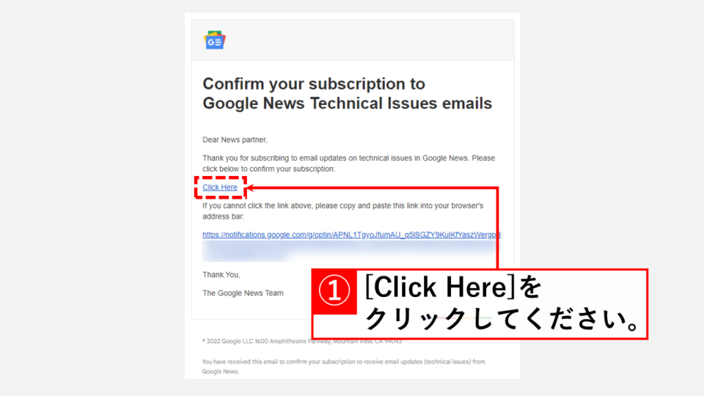 首先,打開“確認您的 Google 新聞電子郵件訂閱 - 產品更新”並按照電子郵件中的說明進行操作。點擊【點擊這裡】請。