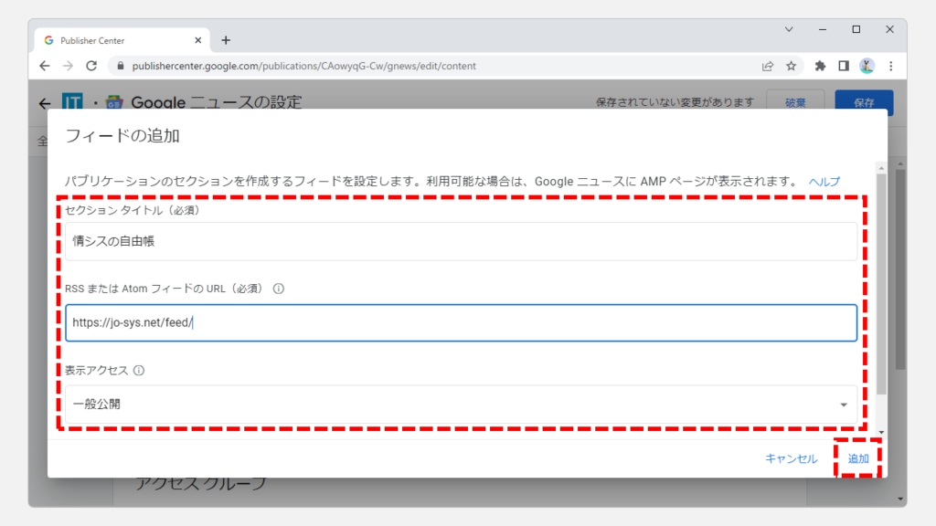 當 Google 新聞的審核結果為“公開”時的屏幕