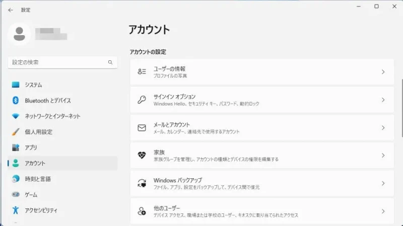當前帳戶為[Microsoft帳戶]時顯示。 [本地帳戶]不顯示。 - 單擊您帳戶中的[用戶信息]。