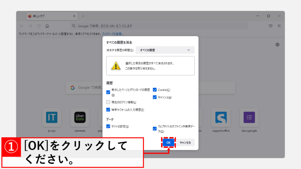 啟動 Firefox,使其成為活動窗口,然後按下鍵盤。控制鍵+轉移+刪除按鍵請。