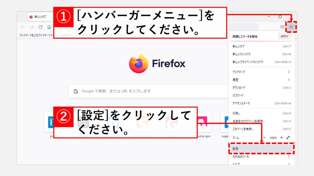 啟動火狐瀏覽器並在右上角單擊[≡](漢堡菜單)請這樣做。