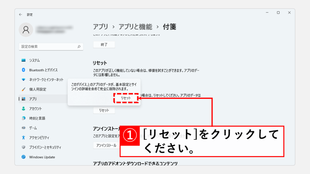 當您單擊“重置”時,您將看到一條消息:“此設備上的所有應用數據都將被永久刪除,包括您的偏好設置和登錄詳細信息。”