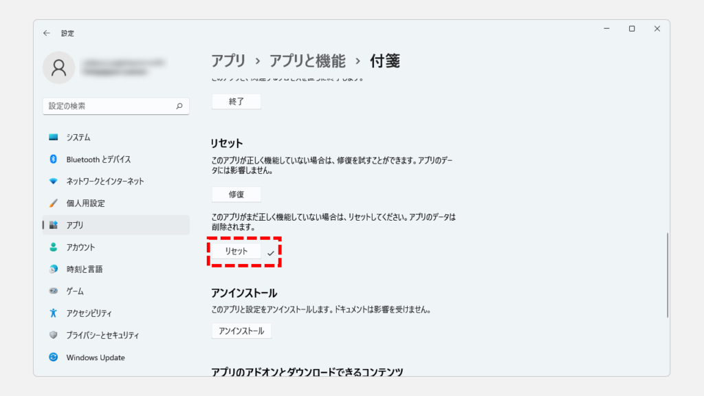 修復完成後,“重置”旁邊將出現一個複選標記。