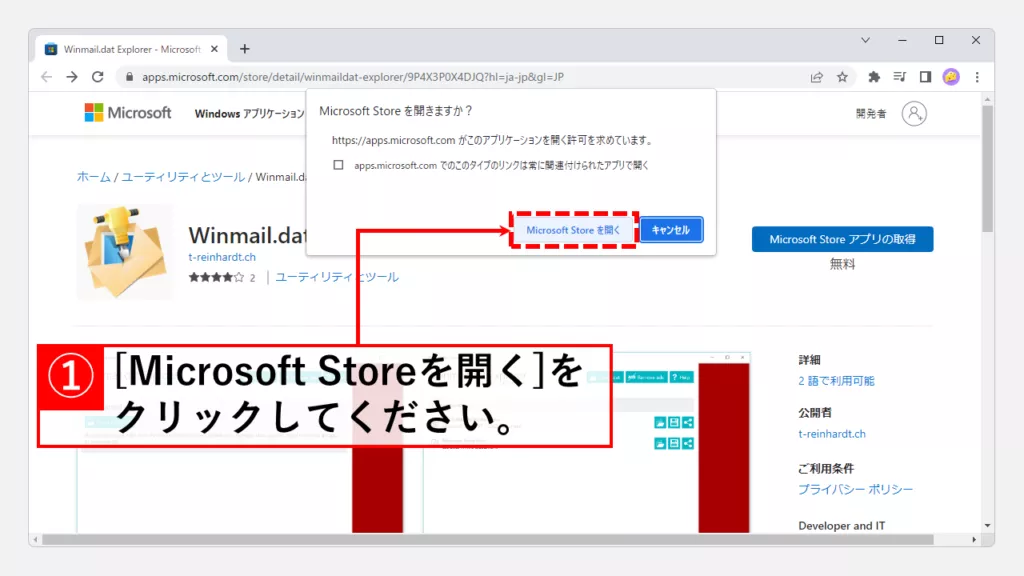 單擊“打開 Microsoft Store”,將打開一個窗口,您可以在其中獲取 Winmail.dat Explorer。