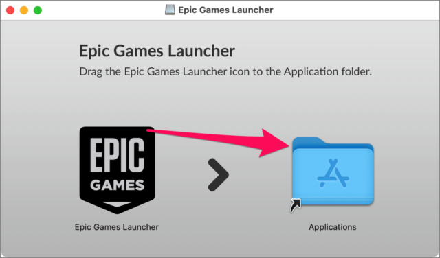將 Epic Games Launcher 拖放到應用程序中。 -