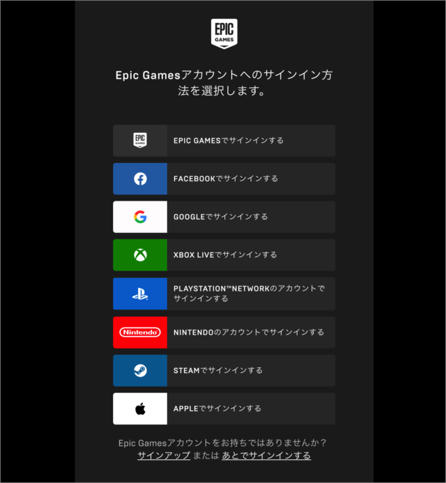 登錄您的 Epic Games 帳戶。在本例中,我們選擇使用 Epic Games 登錄。