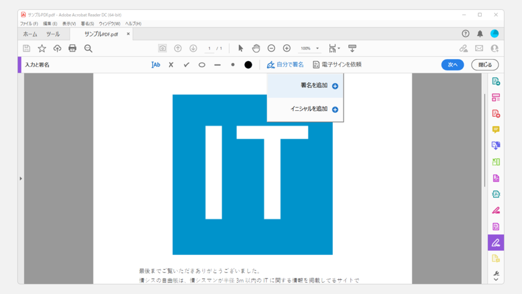 當您單擊“簽名”時,將出現一個菜單,您可以在其中選擇“添加簽名”和“添加縮寫”選項。