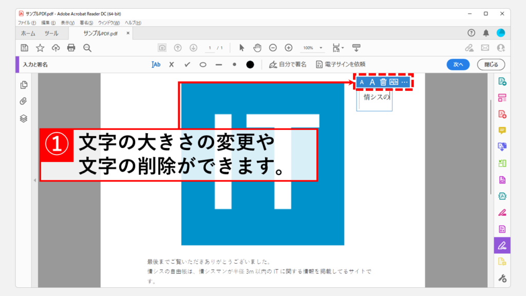 如果要更改或刪除已輸入的字符,必須再次單擊[簽名]筆標記並選擇它。