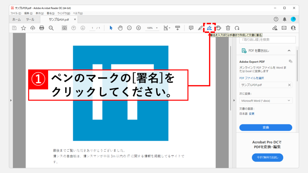 接下來,單擊工具欄底部的鋼筆標記。點擊【簽名】請。