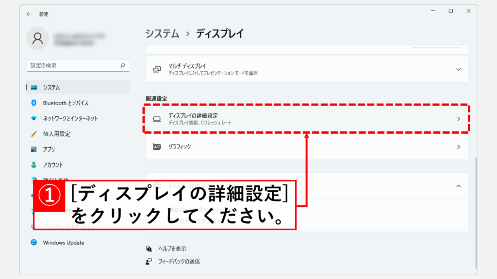 單擊[高級顯示設置]將進入標有“系統>顯示>高級顯示設置”的屏幕。