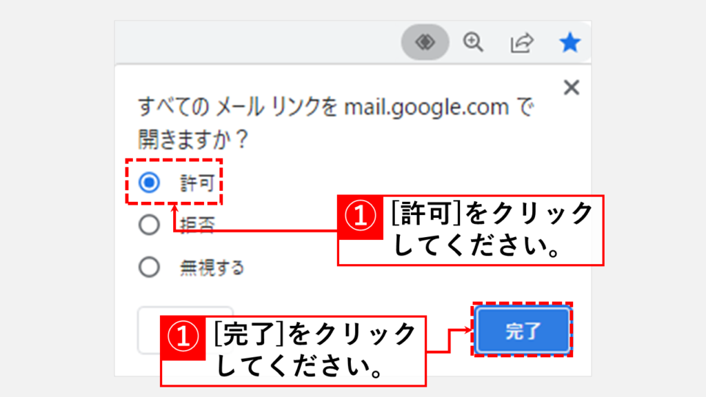 當您單擊該標記時,Google Chrome 上會打開一個窗口,顯示“您希望在 mail.google.com 上打開所有電子郵件鏈接嗎?”