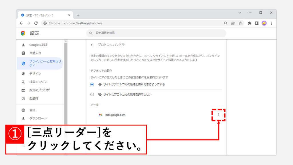 步打開 Google Chrome“協議處理程序”設置頁面,然後單擊 [︙]