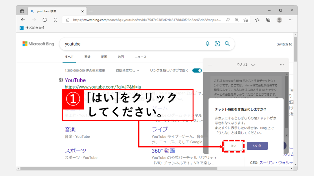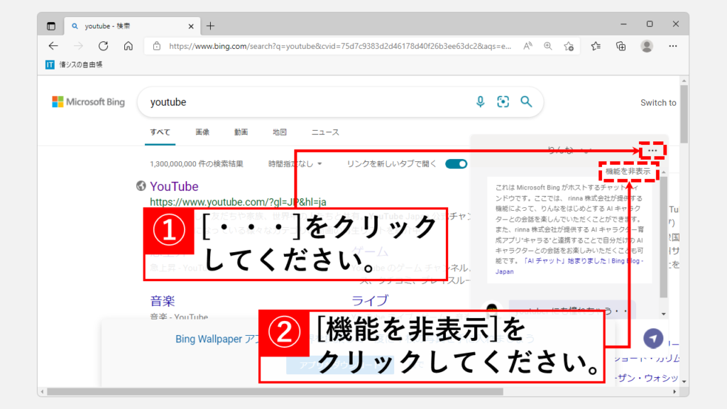 在這裡,我們將詳細說明如何隱藏顯示在搜索引擎Bing右上角的日本微軟開發的AI“Rinna”。