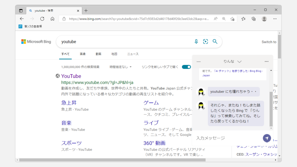 事實上,它可能有一些非常有用的功能。如果您想在隱藏之前了解“AI Rinna”的詳細功能,請點擊這裡。微軟必應博客請看一下。