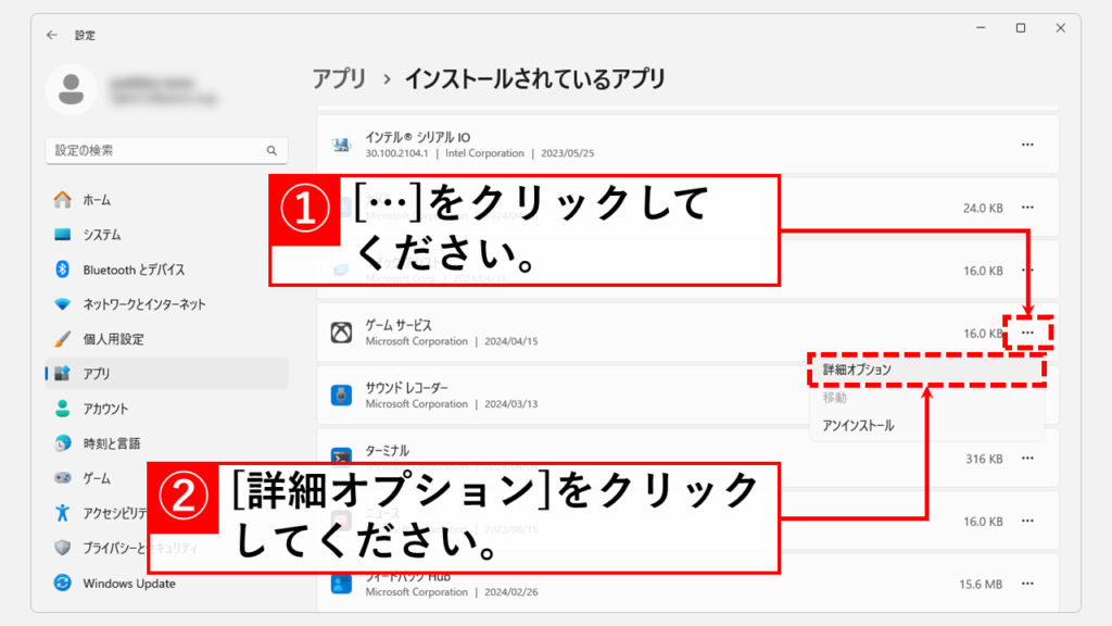 單擊應用程序右側的 [...](三個點)以向下展開菜單。單擊高級選項請。