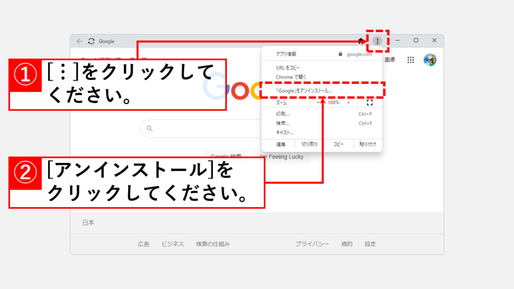 在此,我們以應用程序為例,詳細說明如何將Google(https://www.google.com/)安裝為應用程序並在不顯示地址欄的情況下啟動它。