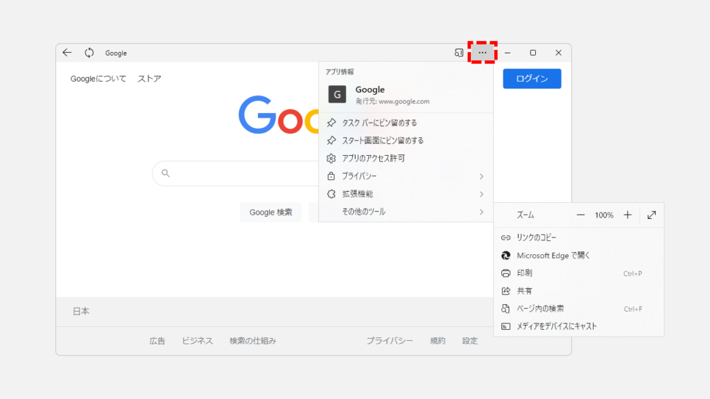 是的,您可以從屏幕右上角的[三點]→[其他工具]→[打印]進行打印。您還可以通過按鍵盤上的 Ctrl + P 進行打印。