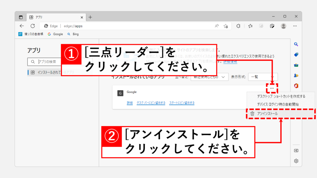 視窗已安裝的應用程序屏幕唐人,Microsoft Edge 設置屏幕有兩種刪除方法,所以我將詳細解釋每種方法。