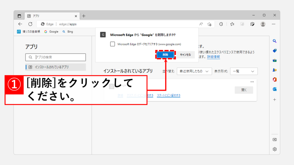 單擊[刪除]將從“已安裝的應用程序”列表中刪除目標網站上的應用程序。