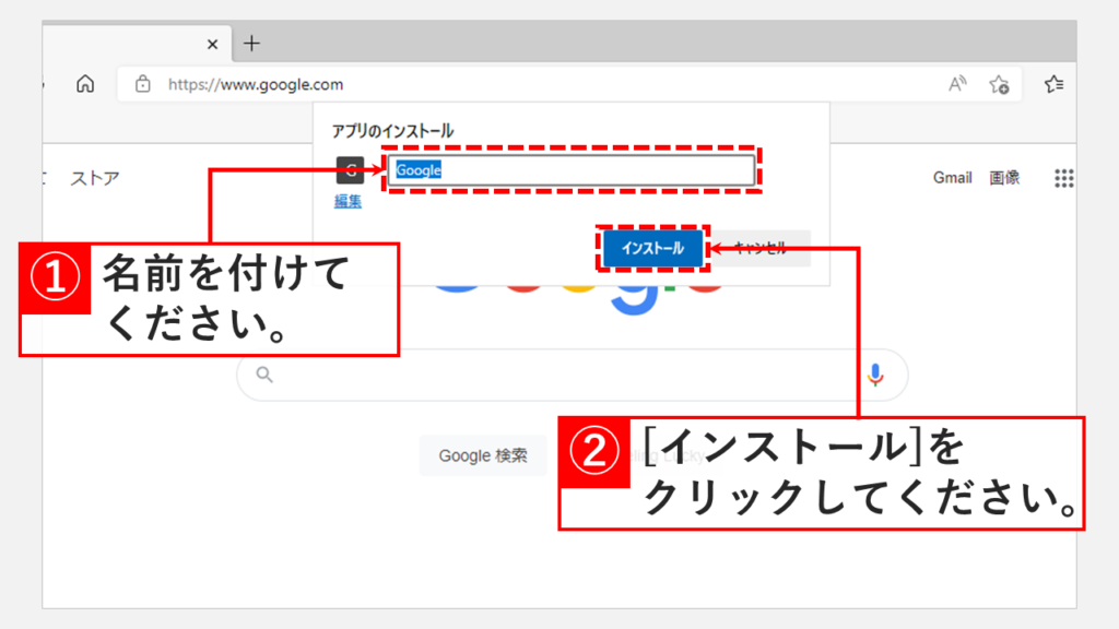 如何將網站安裝為應用程序並隱藏地址欄步驟2 輸入應用程序名稱,然後單擊【安裝】
