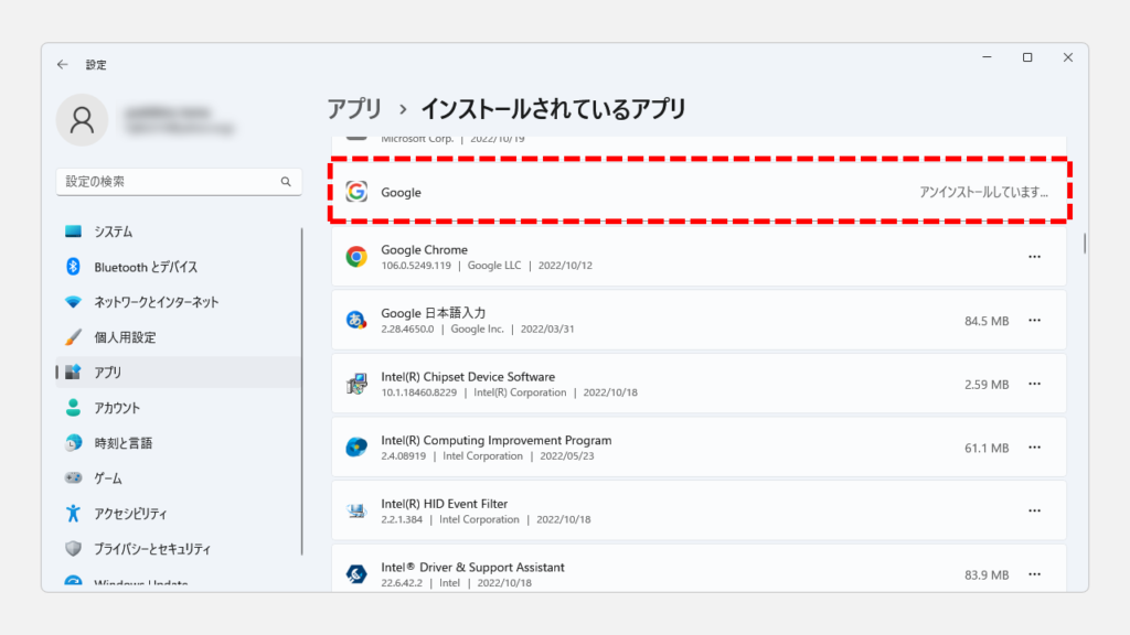 步確認該網站已從已安裝的應用程序列表中消失。
