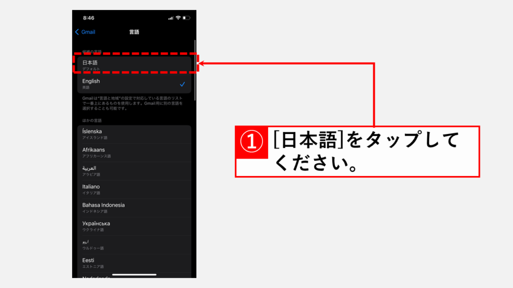 接下來是如何將 iPhone 上的 Gmail 應用程序更改回日語。
