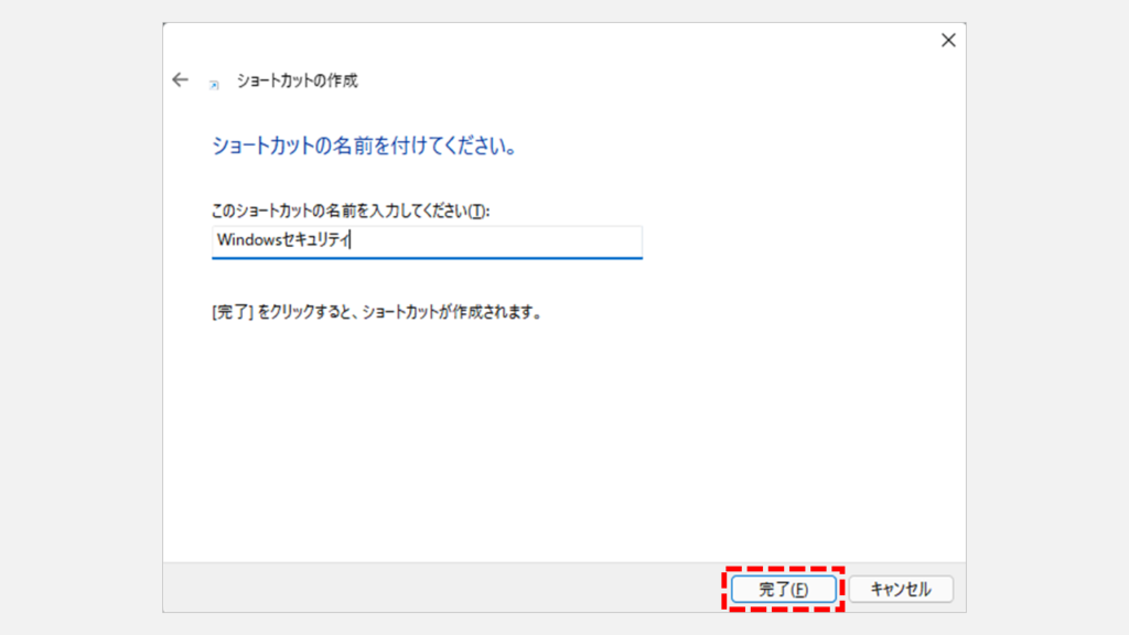 單擊[下一步]時,出現消息“請命名快捷方式”。顯示。