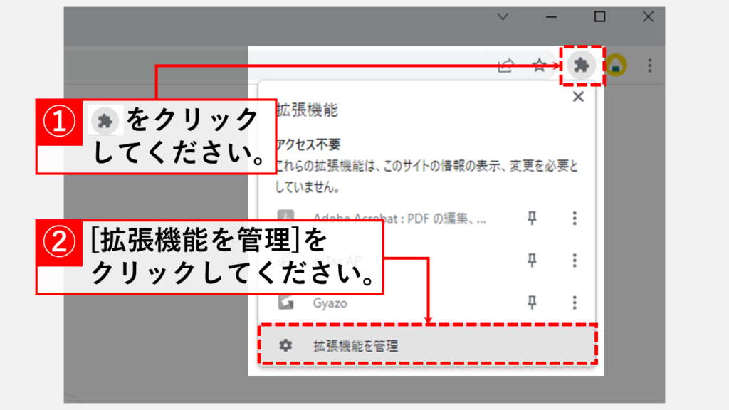 如何在隱身模式下使用擴展程序 第 2 部分 從擴展程序列表中進行設置 步驟 1 單擊擴展程序(附加組件)圖標,然後單擊[管理擴展程序]。