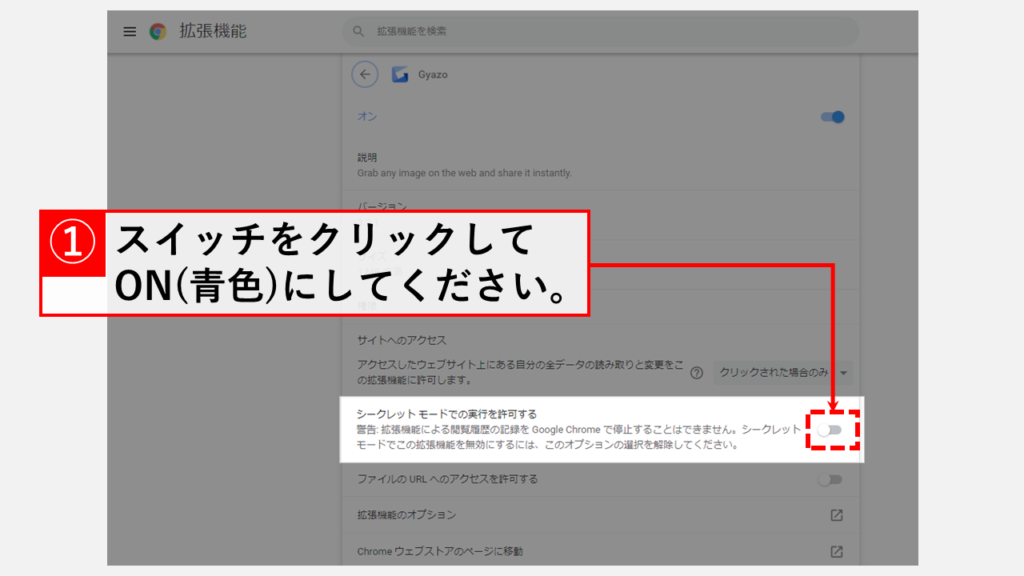 如果您不再在隱身模式下使用該擴展程序,請單擊此開關將其禁用(灰色)。